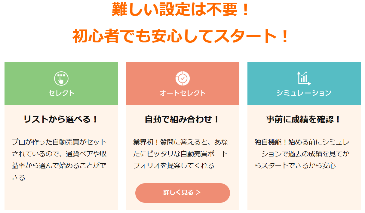 投資初心者でも比較的始めやすい自動売買サービスですね。