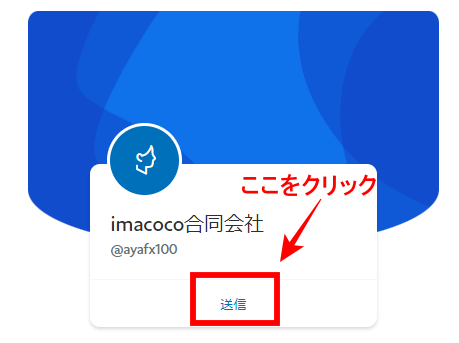 2.「imacoco合同会社」という名前と送信ボタンが出たら